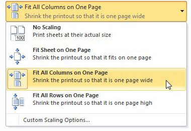 Από την άλλη πλευρά του νομίσματος, αν έχετε μερικές πάρα πολλές σειρές, αλλά πάρα πολλές στήλες, μπορείτε να χρησιμοποιήσετε τοΤοποθετήστε όλες τις σειρές σε μία σελίδαεπιλογή στοΧωρίς κλιμάκωσηαναπτυσσόμενο μενού.