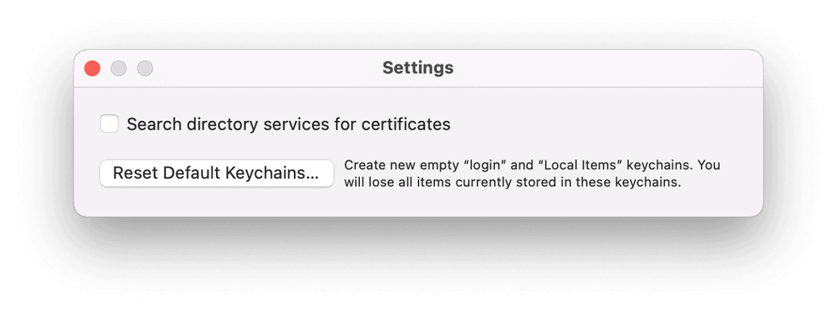 Εάν η επαναφορά των προεπιλεγμένων keychains δεν λειτουργεί, το επόμενο βήμα είναι να ελέγξετε ότι τα δικαιώματα έχουν οριστεί σωστά.