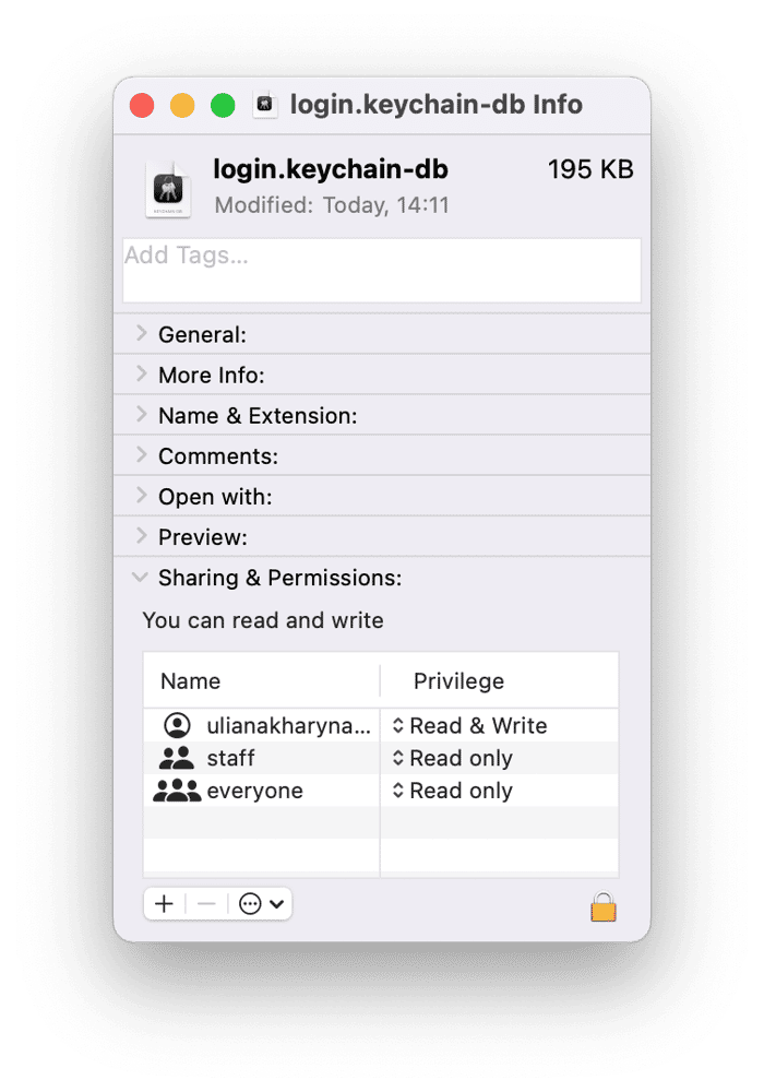 Η άλλη δυνατότητα, αν δείτε το μήνυμα σφάλματος, είναι ότι το macOS μπορεί να δει το keychain αλλά δεν μπορεί να το ανοίξει λόγω λανθασμένα καθορισμένων δικαιωμάτων.