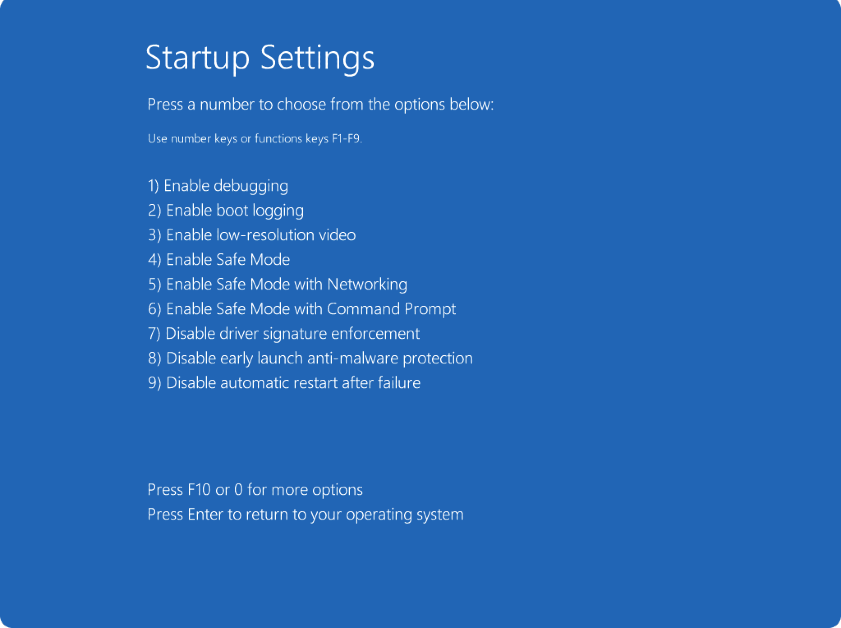 Εισαγάγετε τη λειτουργία ανάκτησης των Windows και, στη συνέχεια, μεταβείτε στην αντιμετώπιση προβλημάτων> Προχωρημένες επιλογές> Ρυθμίσεις εκκίνησης και πατήστε F4 ή F5.