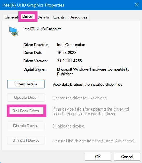 Βήμα 4:Μεταβείτε στοΟδηγόςκαρτέλα και χτυπήστεΑναστρέψτε το πρόγραμμα οδήγησης.