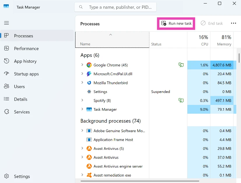 Βήμα 2:Κλικ στοΕκτελέστε νέα εργασία.