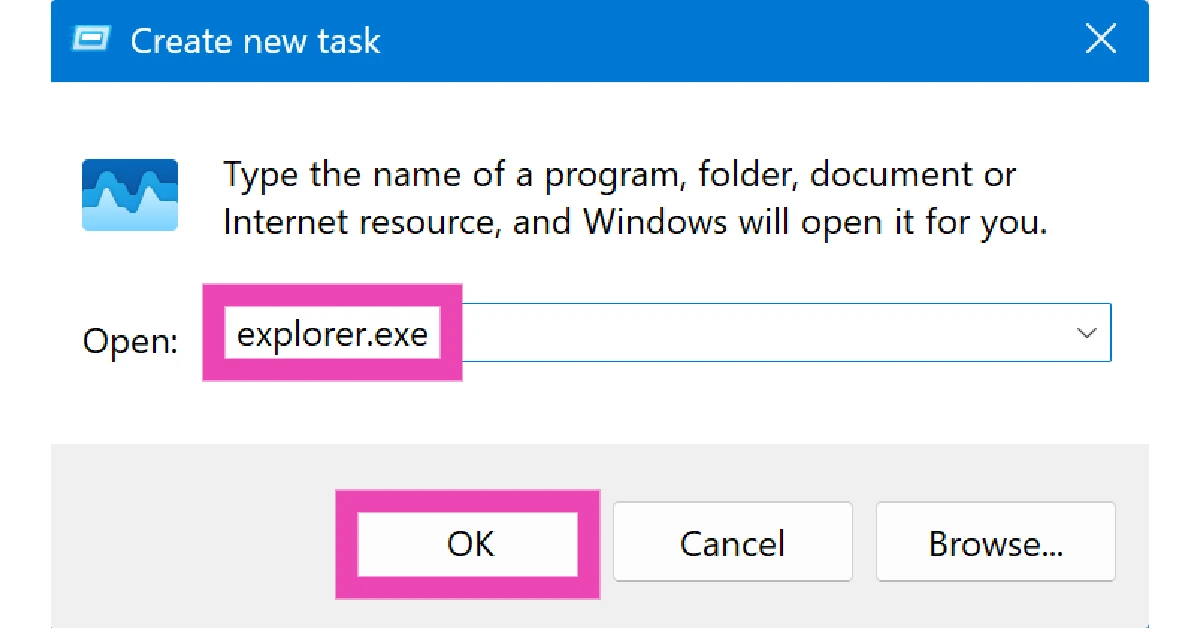 Εκτελέστε το αρχείο Explorer με μη αυτόματο τρόπο