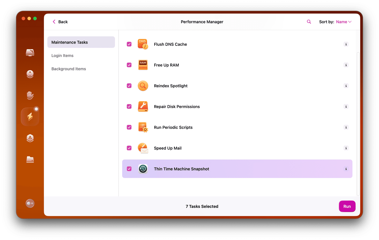 Κάνοντας όλα αυτά που παίρνουν χειροκίνητα την εξειδίκευση και το χρόνο και είναι λίγο μια αγγαρεία. Αλλά δεν χρειάζεται να είναι. Η δυνατότητα απόδοσης του CleanMYMAC μπορεί να τα κάνει όλα για εσάς. Σαρώνει τον Mac σας, αναζητώντας εργασίες συντήρησης που πρέπει να εκτελεστούν, και στη συνέχεια σας δείχνει τι είναι. Μπορείτε είτε να τα εκτελέσετε όλα με ένα κλικ ή να ελέγξετε τι έχει βρει και να επιλέξει ποιες εκτέλεσης. Μπορεί επίσης να σας βοηθήσει να διαχειριστείτε τα στοιχεία σύνδεσης και φόντου για να σας βοηθήσουν να διατηρήσετε το Mac σας να λειτουργεί ομαλά.
