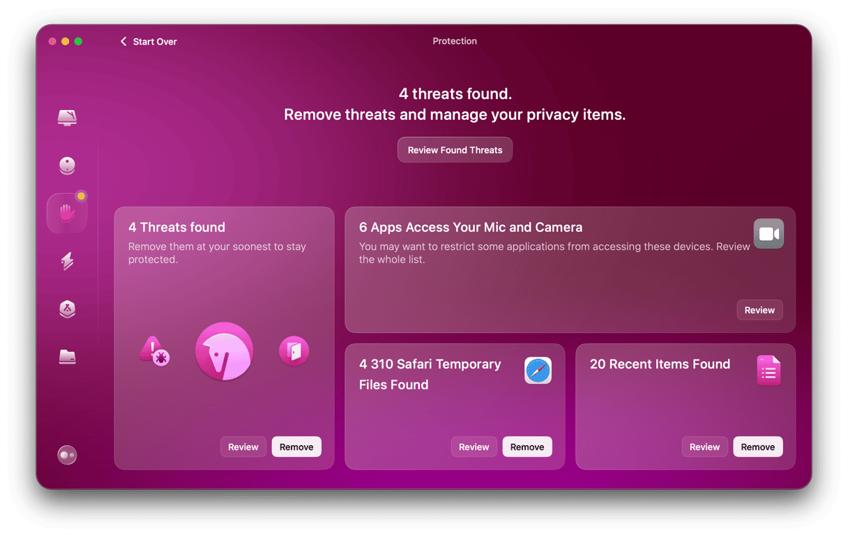 Στη συνέχεια, υπάρχουν οι ιστότοποι που αφήνουν τα cookies ή cache στο Mac, το πρόγραμμα περιήγησής σας και το ιστορικό λήψης, την πρόσφατη λίστα στοιχείων και φυσικά το κακόβουλο λογισμικό, το οποίο θα μπορούσε να αποτελέσει σοβαρή παραβίαση της ιδιωτικής σας ζωής. Ο ευκολότερος τρόπος για να διαχειριστείτε όλα αυτά τα δικαιώματα και να αντιμετωπίσετε τα δεδομένα του προγράμματος περιήγησης, να σαρώσετε για κακόβουλο λογισμικό και να καθαρίσετε την πρόσφατη λίστα των στοιχείων σας είναι η δυνατότητα προστασίας στο CleanMYMAC. Μπορεί να σαρώσει το Mac σας και να σας αναφέρει σε όλα αυτά με ένα πάτημα. Τότε μπορείτε να αποφασίσετε τι να κάνετε.
