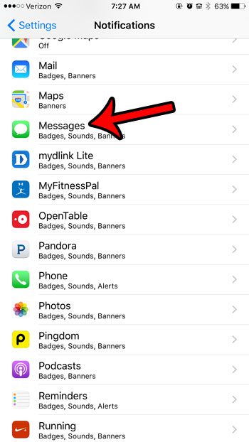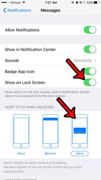 Εάν χρησιμοποιείτε αυτήν τη στιγμή το στυλ ειδοποίησης banner ή δεν λαμβάνετε καθόλου ειδοποιήσεις μηνυμάτων κειμένου, τότε μπορείτε να μάθετεΠώς να λάβετε ειδοποιήσεις μηνυμάτων κειμένου στο iPhone σας 6Ακολουθώντας τα βήματα στον παρακάτω οδηγό.