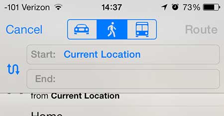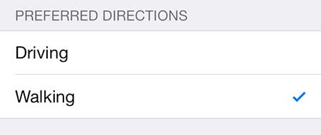 Σημειώστε ότι η ρύθμιση που θα αλλάξουμε πρόκειται απλώς για προεπιλογή σε κατευθύνσεις περπατήματος αντί για οδηγίες. Μπορείτε πάντα να αλλάζετε μεταξύ των τρόπων κατεύθυνσης αγγίζοντας το κατάλληλο εικονίδιο στην κορυφή της σελίδας κατευθύνσεων της εφαρμογής MAPS.