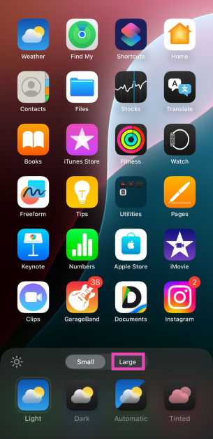 Το iOS 18 σας επιτρέπει να αποκρύψετε τα ονόματα των εφαρμογών στην αρχική οθόνη του iPhone σας κάνοντας τα εικονίδια μεγαλύτερα. Πατήστε LONG οποιοδήποτε κενό σημείο στην οθόνη, μεταβείτε στοΕπεξεργασία> Προσαρμογή, και επιλέξτε 'μεγαλύτερο'.