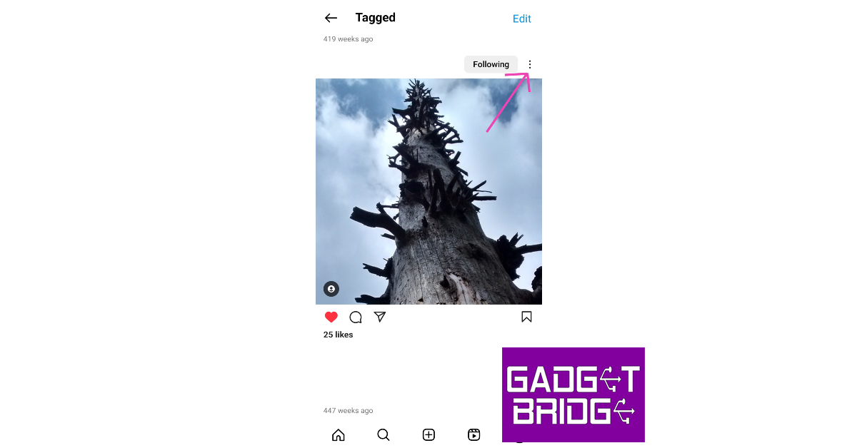 Για να επαναφέρετε μια εικόνα με ετικέτα στο προφίλ σας, απλά επισκεφθείτε την ανάρτηση Instagram και επιλέξτε 'Unside' μετά την εκτόξευση των ελλείψεων.
