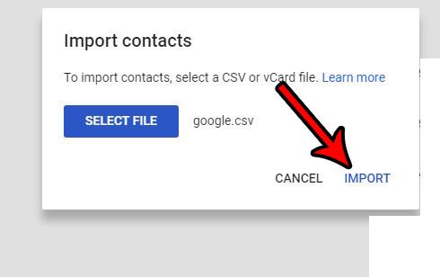 Βήμα 14: Κάντε κλικ στοΕισαγωγήκουμπί για να εισαγάγετε τις επαφές αρχείου CSV στον λογαριασμό σας στο Google.