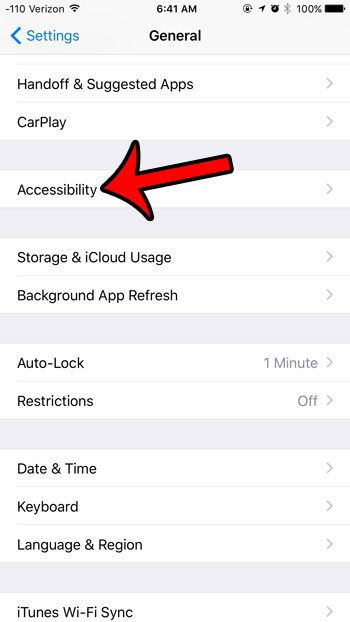 Βήμα 3: Αγγίξτε τοΠροσιτότητακουμπί κοντά στο κέντρο της οθόνης.