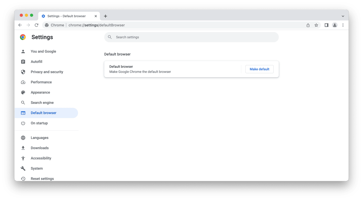 - Στις ρυθμίσεις, αναζητήστε προεπιλεγμένο πρόγραμμα περιήγησης στην πλαϊνή μπάρα και επιλέξτε το.