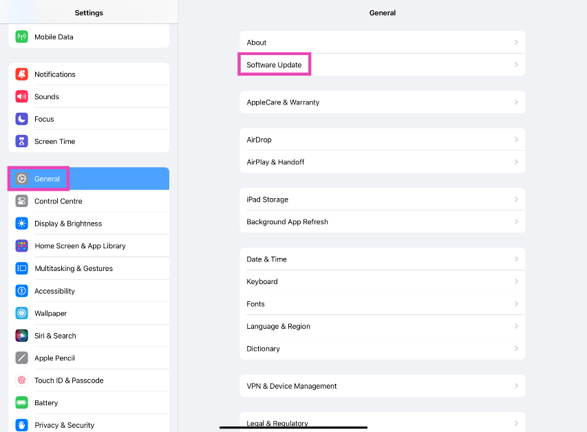 Βήμα 6:ΠηγαίνωΡυθμίσεις> Γενικάκαι επιλέξτεΕνημέρωση λογισμικού.