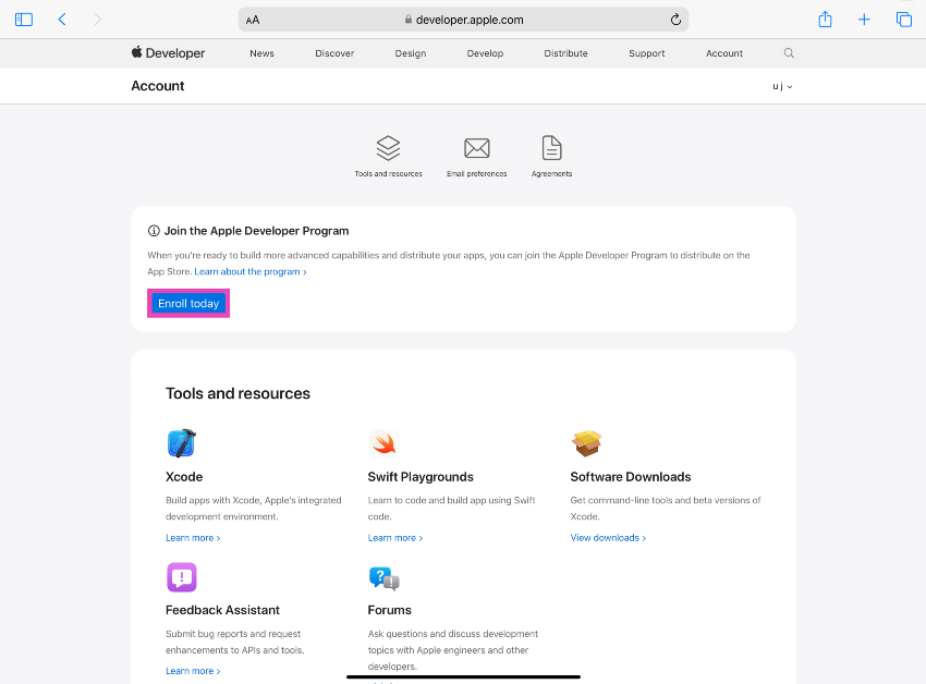 Βήμα 1:Πηγαίνετε στοΙστοσελίδα προγραμματιστών της Apple.