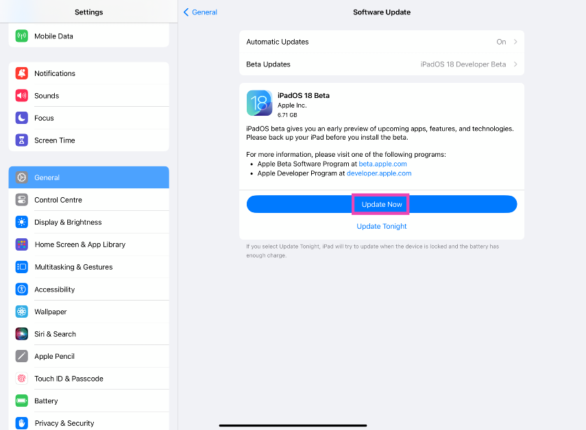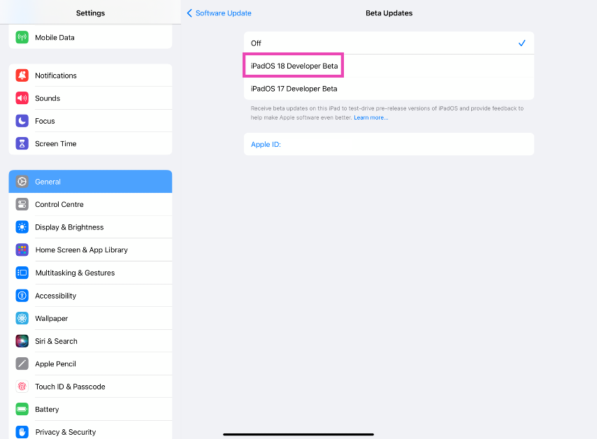 Μπορείτε να χρησιμοποιήσετε την έκδοση Beta του προγραμματιστή του iPados 18 εγγράφοντας το λογαριασμό σας στο πρόγραμμα Developer Apple.