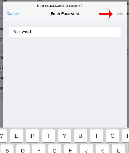 Βήμα 4: Πληκτρολογήστε τον κωδικό πρόσβασης για το δίκτυο και, στη συνέχεια, αγγίξτε τοΕνώνωκουμπί στο επάνω δεξιά του παραθύρου.