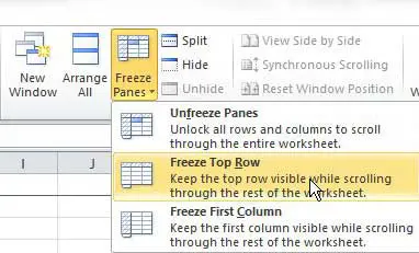 Μπορείτε να λύσετε αυτό το πρόβλημα διατηρώντας την κορυφαία σειρά ορατή ανά πάσα στιγμή, χρησιμοποιώντας ένα χαρακτηριστικό στο Excel 2010 που κλειδώνει ή παγώνει την κορυφαία σειρά σας ενώ μετακινηθείτε στο υπόλοιπο υπολογιστικό φύλλο.