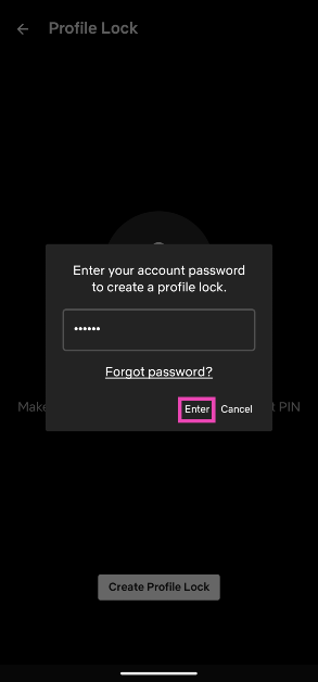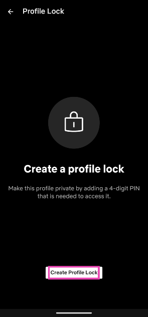 ΠηγαίνωΜενού Netflix> Hamburger> Διαχείριση προφίλ> Προφίλ> Κλείδωμα προφίλ> Δημιουργία κλειδώματος προφίλ, Εισαγάγετε τον κωδικό πρόσβασης του λογαριασμού σας και ρυθμίστε ένα τετραψήφιο πείρο.