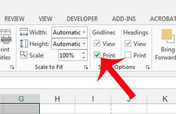 Βήμα 5: Ελέγξτε το πλαίσιο στα αριστερά τουΑποτύπωμαυπόΓραμμές με τα γήπεδαστοΕπιλογές φύλλουΤμήμα της πλοήγησης.