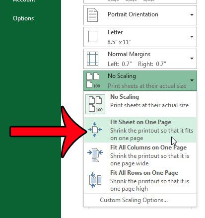 Εάν ο πίνακας σας έχει ρυθμιστεί για εκτύπωση σε περισσότερες από μία σελίδες, αλλά θέλετε να το κρατήσετε μόνο σε μία σελίδα, τότε κάντε κλικ στοΧωρίς κλιμάκωσηκουμπί και επιλέξτε τοΤοποθετήστε το φύλλο σε μία σελίδαεπιλογή. Στη συνέχεια, μπορείτε να εκτυπώσετε το κενό τραπέζι σας.