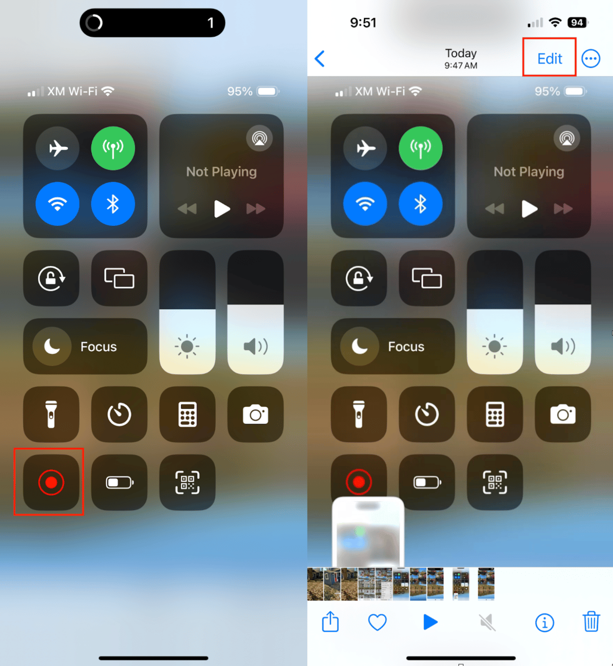 - Αφού δημιουργήσετε την παρουσίαση της παρουσίασης, τραβήξτε διαγώνια κάτω από την επάνω δεξιά γωνία του iPhone σας για να ανοίξετε το κέντρο ελέγχου του iPhone.