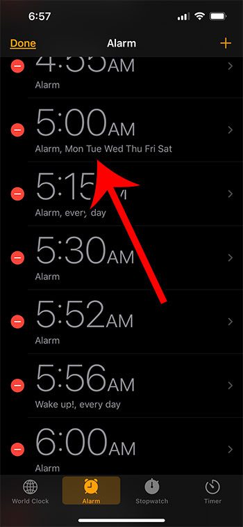 - Επιλέξτε το συναγερμό για αλλαγή.