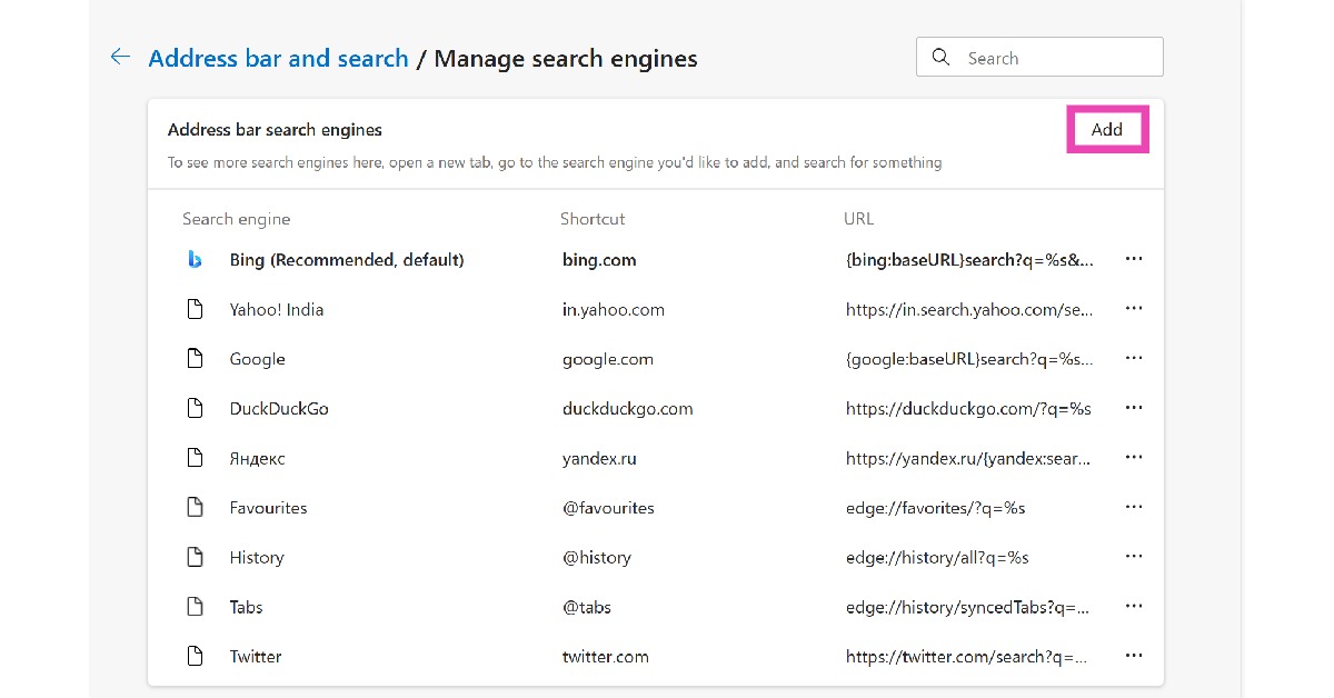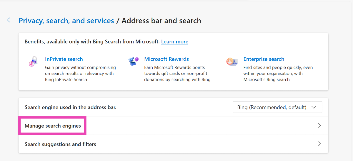 Βήμα 3:Κλικ στοΔιαχειριστείτε τις μηχανές αναζήτησης και την αναζήτηση ιστότοπου.
