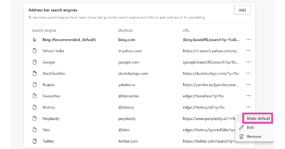 Έτσι μπορείτε να κάνετε την αμηχανία AI την προεπιλεγμένη μηχανή αναζήτησης στο Google Chrome και το Microsoft Edge. Μόλις ρυθμιστεί ως η προεπιλεγμένη μηχανή αναζήτησης, μπορείτε να έχετε πρόσβαση απευθείας από τη γραμμή διευθύνσεων. Οποιοδήποτε ερώτημα πληκτρολογείτε στο πλαίσιο URL θα απαντηθεί απόΑμηχανία AI. Εάν έχετε οποιεσδήποτε ερωτήσεις, ενημερώστε μας στα σχόλια!