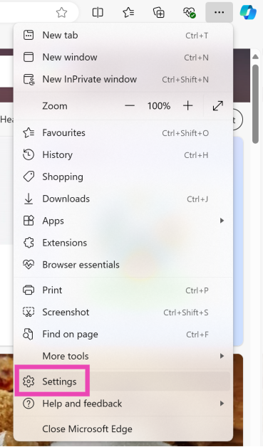Βήμα 1: ΕκτόξευσηMicrosoft Edge στον υπολογιστή σας και μεταβείτεΡυθμίσεις.