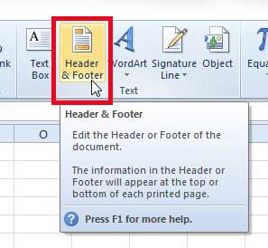 Βήμα 3: Κάντε κλικ στοΚεφαλίδα και υποσέλιδοκουμπί στοΚείμενοΤμήμα της κορδέλας.