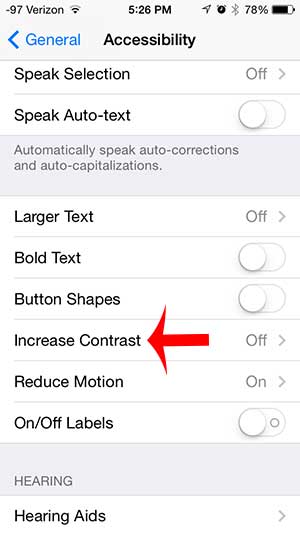Βήμα 4: Μετακινηθείτε προς τα κάτω και επιλέξτε τοΑύξηση της αντίθεσηςεπιλογή.