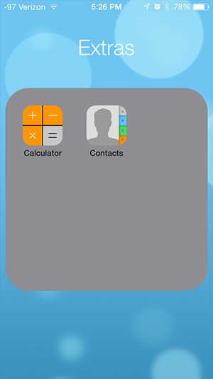Στη συνέχεια, μπορείτε να πατήσετε το κουμπί Home κάτω από την οθόνη σας για να βγείτε από αυτό το μενού και στη συνέχεια να ανοίξετε έναν από τους φακέλους εφαρμογών σας για να δείτε την αλλαγή. Θα πρέπει να μοιάζει με το φόντο του φακέλου της εφαρμογής στην παρακάτω εικόνα.