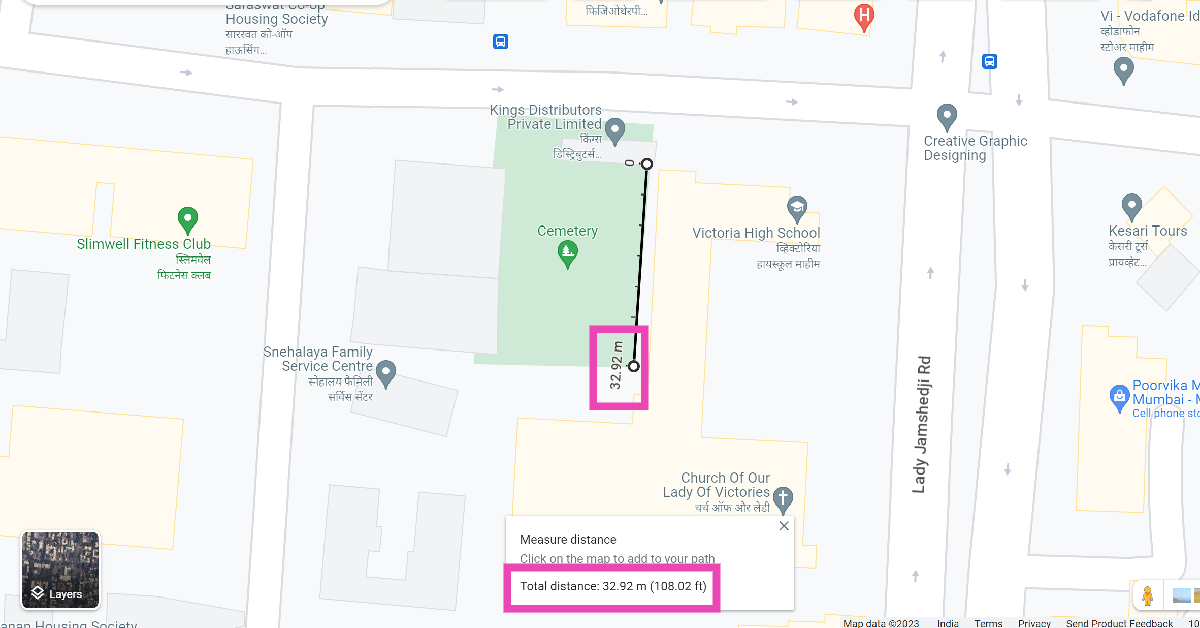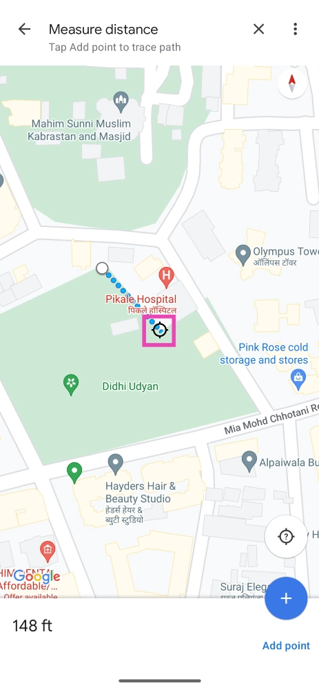 Βήμα 4:Θα μπορείτε να δείτε την απόσταση μεταξύ των δύο σημείων στοκάτω μέρος της οθόνης.