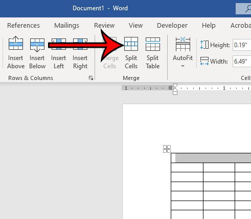 Μπορεί να παρατηρήσετε ότι το κουμπί στα δεξιά του κουμπιού Merge Cells λέει "Split Cells". Υπάρχει επίσης μια επιλογή "split table" στην ομάδα συγχώνευσης στην κορδέλα.