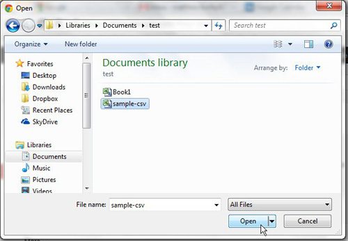- Επιλέξτε το αρχείο CSV και, στη συνέχεια, κάντε κλικ στο κουμπίΑνοιχτό.