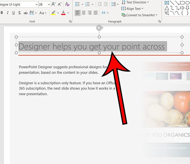 Το PowerPoint σας παρέχει μια ποικιλία εργαλείων που σας επιτρέπουν να προσαρμόσετε το κείμενό σας. Χρησιμοποιήστε αυτά τα βήματα για να περιγράψετε το κείμενο στο PowerPoint.