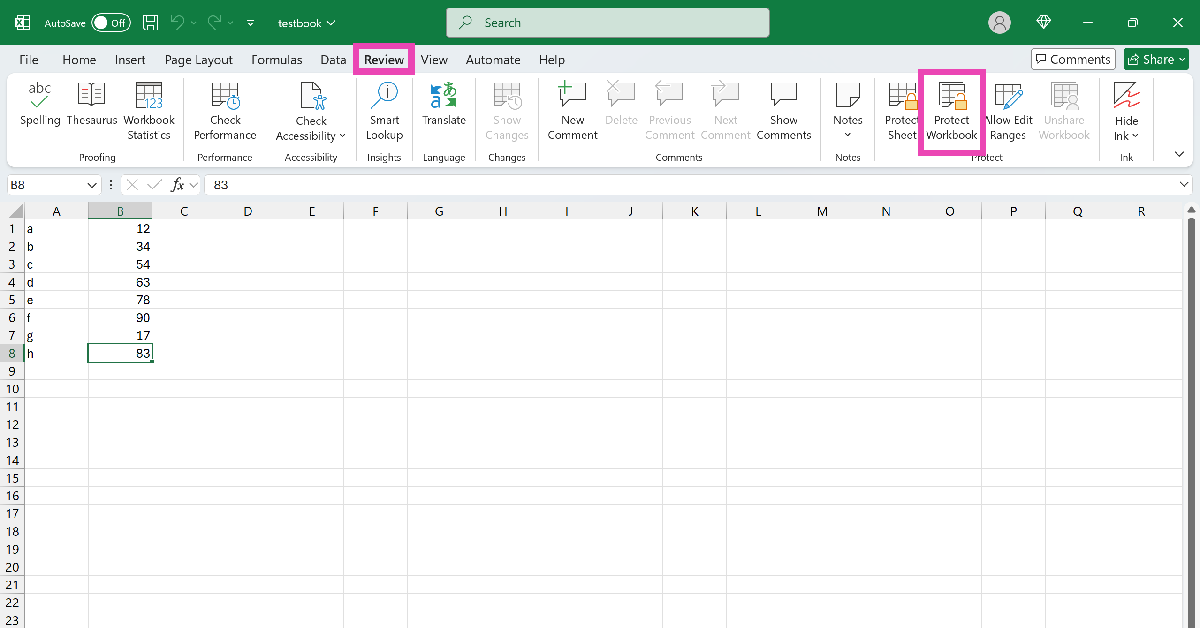 Βήμα 2:Πηγαίνετε στοΚριτικήκαρτέλα και επιλέξτεΠροστασία του βιβλίου εργασίας.