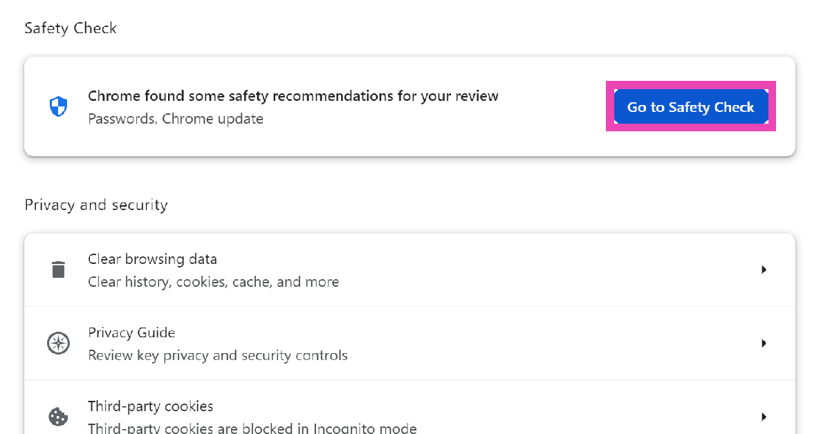 Σκεφτείτε τον έλεγχο ασφαλείας ως ταμπλό ιδιωτικού απορρήτου και ασφαλείας για το Google Chrome. Μπορεί να έχει πρόσβαση από τις ρυθμίσεις του προγράμματος περιήγησης. Ο έλεγχος ασφαλείας παρακολουθεί τα τρία ζωτικά στοιχεία της ηλεκτρονικής ασφάλειας: