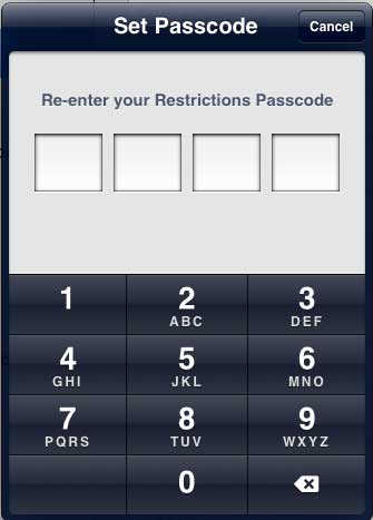 Εάν πρέπει να αποκτήσετε πρόσβαση στο App Store για να κατεβάσετε ή να ενημερώσετε μια εφαρμογή, τότε θα χρειαστεί να επιστρέψετε στο μενού περιορισμών και να ενεργοποιήσετε ξανά το App Store χρησιμοποιώντας τον κωδικό πρόσβασης που θα επιλέξετε παρακάτω.