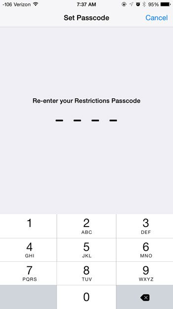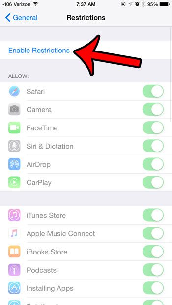 - Βήμα 4: Πατήστε το μπλεΕνεργοποίηση περιορισμώνκουμπί στο επάνω μέρος της οθόνης.