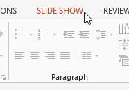Βήμα 2: Κάντε κλικ στοSlide showεπιλογή στο επάνω μέρος του παραθύρου.