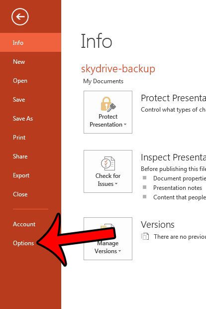 Βήμα 3: Κάντε κλικ στοΕπιλογέςκουμπί στο κάτω μέρος της στήλης στην αριστερή πλευρά του παραθύρου.