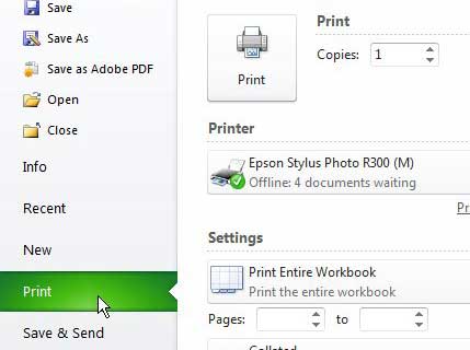 Σημειώστε ότι μπορείτε επίσης να αποκτήσετε γρήγορα πρόσβαση σε αυτό το μενού εκτύπωσης από το υπολογιστικό φύλλο σας ανά πάσα στιγμή πατώνταςCtrl + P.