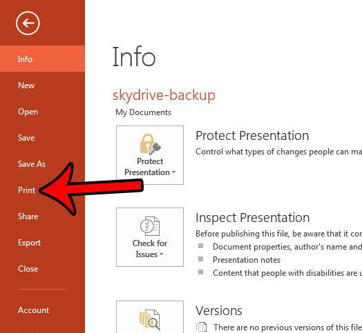 Θα χρησιμοποιήσουμε μια μέθοδο που τροποποιεί μια ρύθμιση μέσω του μενού εκτύπωσης στο PowerPoint 2013, ώστε τότε να δοκιμάσετε αμέσως τις αλλαγές για να βεβαιωθείτε ότι επιτυγχάνετε το επιθυμητό αποτέλεσμα.