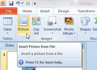 Αυτό το σεμινάριο υποθέτει ότι το έγγραφό σας PowerPoint έχει ήδη το πλαίσιο κειμένου και την εικόνα της διαφάνειας. Εάν όχι, τότε μπορείτε να αποφύγετε τη ρύθμιση των στρωμάτων εισάγοντας πρώτα την εικόνα κάνοντας κλικ στοΕισάγωκαρτέλα στο επάνω μέρος του παραθύρου και, στη συνέχεια, κάνοντας κλικ στοΕικόναεπιλογή.