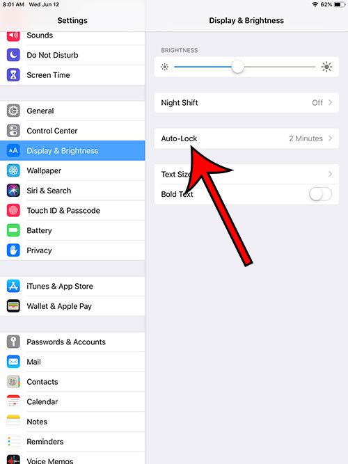 Βήμα 4: Πατήστε την περίοδο αδράνειας μετά από την οποία θα θέλατε το iPad να απενεργοποιήσει την οθόνη.