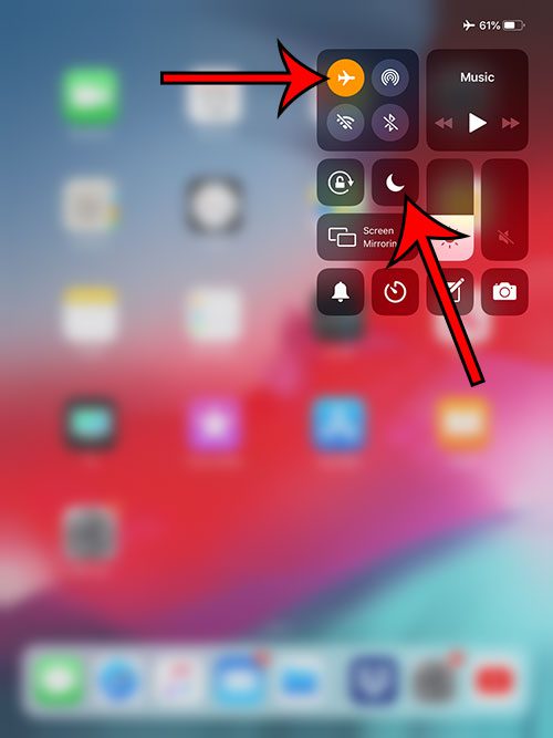 - Σημειώστε ότι υπάρχει επίσης ένα εικονίδιο μισής φεγγάρι κάτω από το εικονίδιο του αεροπλάνου. Πατώντας που θα βάλει το iPad σε μην ενοχλείτε τη λειτουργία. Μπορείτε να προσαρμόσετε τις ρυθμίσεις μην ενοχλείτεΡυθμίσεις> Μην ενοχλείτε.