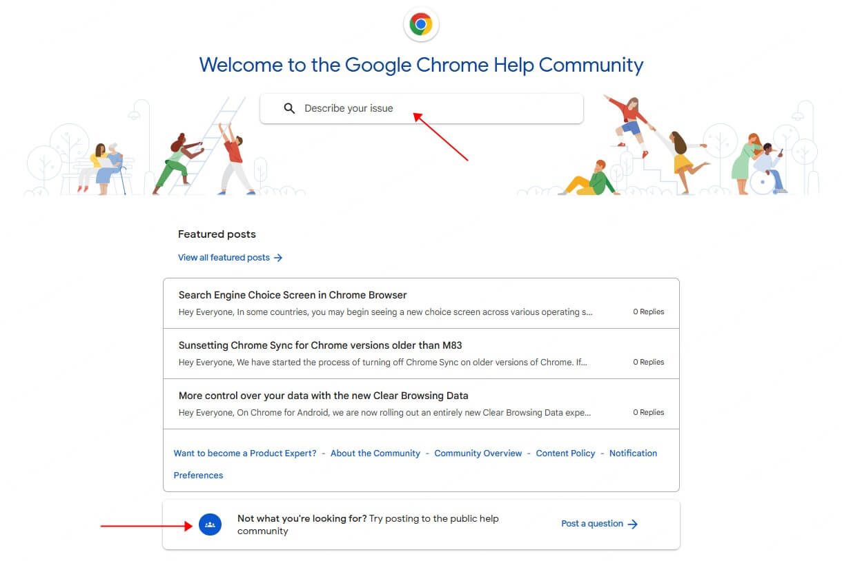 ΕπίσκεψηΥποστήριξη Googleκαι πλοηγηθείτε στοGoogle Chrome Help Communityτμήμα.