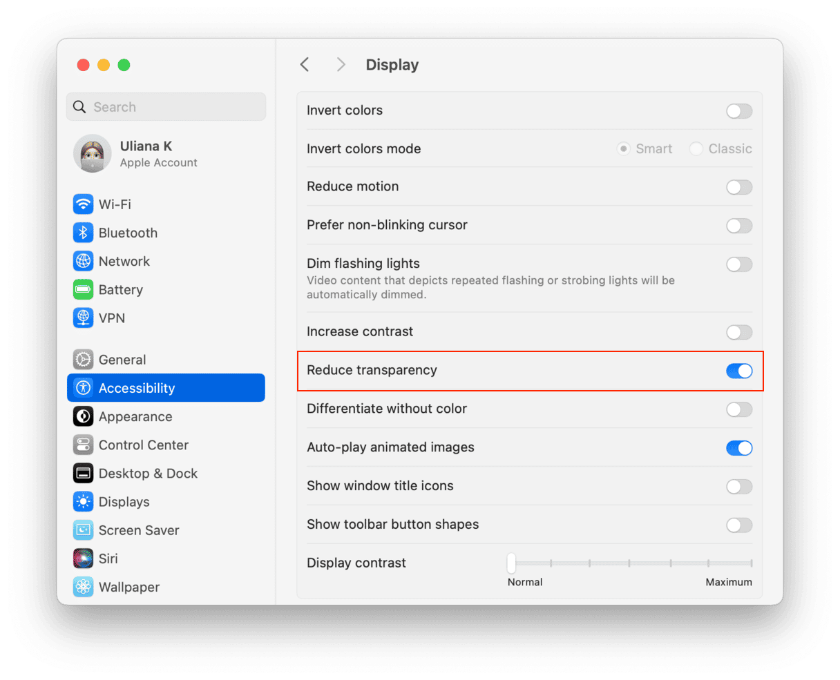 - Μπορεί να βοηθήσει στη βελτίωση της απόδοσης γραφικών του Mac σας, επειδή τροποποιείτε ορισμένες ρυθμίσεις εμφάνισης.