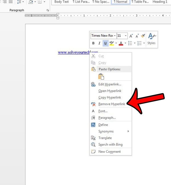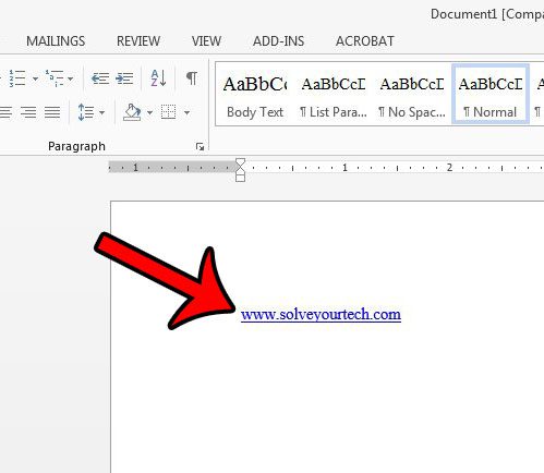 Τα βήματα σε αυτό το άρθρο θα σας δείξουν πώς να αφαιρέσετε έναν ενιαίο υπερσύνδεση στη Microsoft Word 2013. Μόλις ολοκληρώσετε αυτήν την ενέργεια, ο σύνδεσμος που μπορεί να κάνει κλικ θα φύγει, αλλά το κείμενο που περιείχε τον σύνδεσμο (που ονομάζεται επίσης κείμενο άγκυρας) θα παραμείνει.